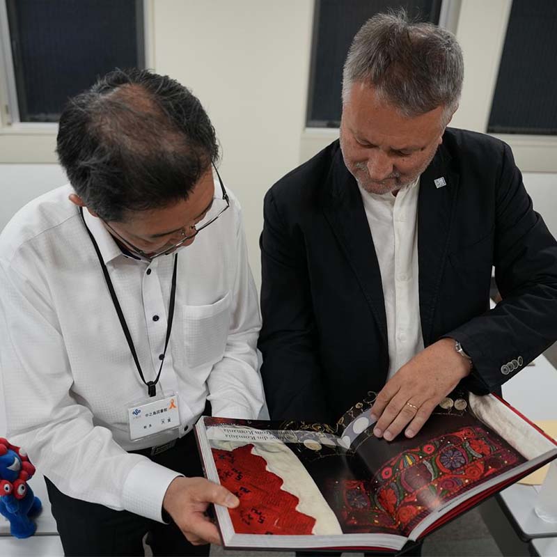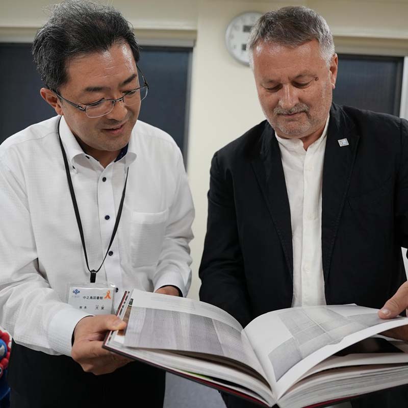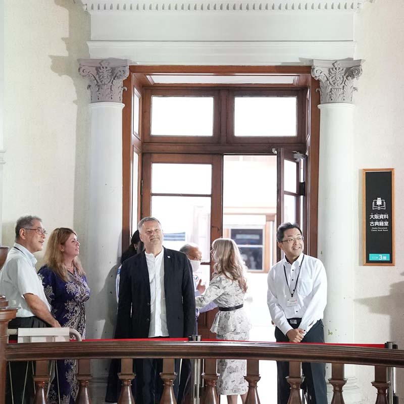 Joi, 2 octombrie 2025, Comisarul General al României pentru Expo 2025 Osaka, domnul Ferdinand Nagy, a oferit, în numele Pavilionului României, o donație de carte Bibliotecii Nakanoshima din Osaka, în prezența domnului Takashi Saito, director general, a domnului Koichiro Oga, director, a domnului Sonzo Tanishita, director adjunct, și a domnului Hideaki Shibata, bibliotecar-șef, precum și a doamnei Carmen Tămaș, profesor de cultură japoneză la Universitatea din Hyogo.