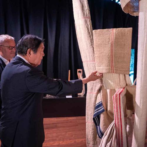 Oficialul japonez a apreciat expoziția „Hemp – Back to Future”, prezentă în Pavilionul României până la închiderea expoziției mondiale, care valorifică patrimoniul material și imaterial al cânepii și evidențiază potențialul său pentru industriile viitorului, admirând în mod special costumele tradiționale românești și japoneze expuse în pavilion, realizate integral din cânepă, subliniind astfel legătura dintre tradiție și inovație.